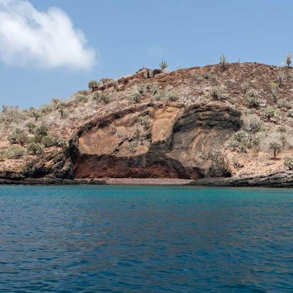 Devil’s Crown, Floreana Island's marine site that cannot be missed on your cruise, is one of the greatest places in Galapagos for swimming and snorkeling. It is actually an eroded volcanic crater, with a ring of uneven rocks coming out of the water. Inside this ring, you can see coral reefs and a diversity of marine life, including King Angel Fish, sea lions, Balloon Fish, sea turtles, eagle rays and various species of sharks. Another beautiful snorkeling and diving site near Floreana is Champion Islet, a tiny island famed for being a great place to see dolphins.