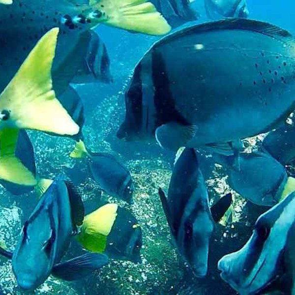 Punta Mejía is located on the southwestern coast of Marchena Island. The calm, deep and clear waters make Punta Mejía one of the best snorkeling and diving sites in Galapagos. You will no doubt encounter a variety of shark species, green sea turtles, rays and even dolphins in this magical undersea world. On this side of the island, there are coves and grottos where you can spot fur seals and Marchena lava lizards. It is also a popular hangout spot for seabirds, like Nazca and blue-footed boobies, the Red-billed Tropicbird and Galapagos Petrels.